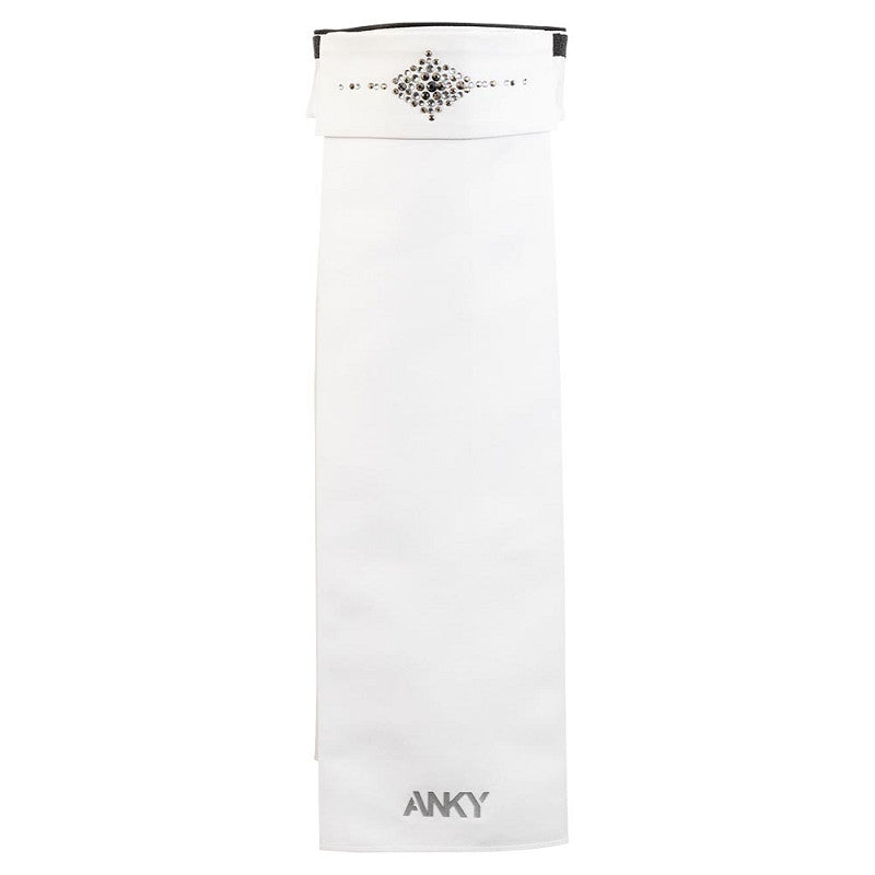 The long front flap of this luxury plastron is adjustable so you can wear the plastron both high and low. Both the front and the collar have shiny rhinestones for an extra chic look. The front of the stock tie has a playful pattern of large and small rhinestones in different colours. The collar is finished with a piping of small stones with shiny sugar stones in between that give an extra sparkling effect. The silicone ANKY® logo on the bottom completes the plastron in a stylish way.