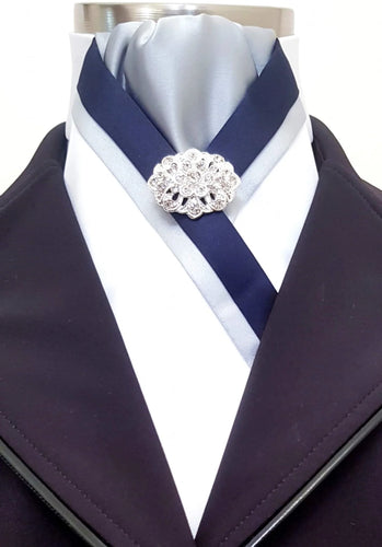 Cadenza Stock Tie~ Grey gathered center/ Navy and grey trim