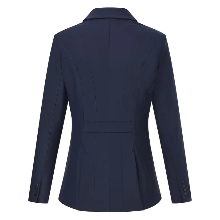 Competition jacket with elegant feminine lines on the back panel * Fabric with airflow function in the backpanel * Refined artworks on the front pockets and backpanel * Horsehead rhinestone logo on the left arm * Closure with zipper and 3 buttons at centre front