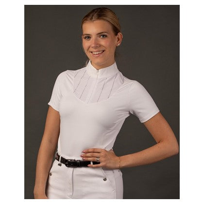 Dapplebay Lady 1/4 Zip Show Top - Short Sleeve-White/Black